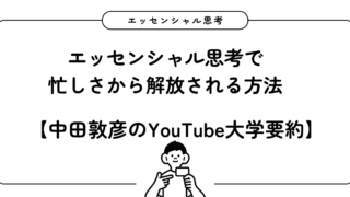 「仕事が減らない…」「毎日忙しいのに成果が出ない…」「やるべきことが多すぎる…」そんな悩みを抱える現代人に向けて、中田敦彦さんのYouTube大学が紹介した**『エッセンシャル思考』**の内容をまとめます。この考え方の核となるのは、「99%...
