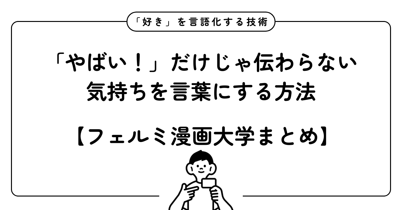 今回はフェルミ漫画大学の動画で紹介された、三宅香帆さんの『「好き」を言語化する技術』の要点を、忙しい30〜40代の方でもサクッと理解できるようにまとめました。